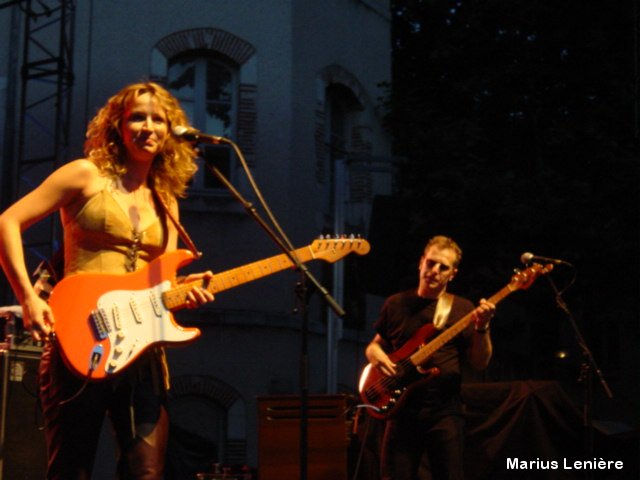 Après avoir été réveillé en douceur par les décibels du Fred Chapellier Blues Band qui jouait au pied de notre hôtel sur la place de marché, Philippe Ménard, investit, en milieu d?après midi, la scène acoustique pour distribuer, comme il sait si bien le faire, entre Blues Roots et Boogie, des instants magiques communicatifs. Guitare acoustique et électrique, grosse caisse et percussions «maison», harmonica et chant, sont la panacée de ce véritable «One Man Band» du Blues? Toujours très impressionnant. Sur la scène «Découverte», les Australiens de Red Rivers et du Britannique Aynsley Lister se proposaient aux suffrages. Les premiers, dans un format, basse, batterie, guitare-chant, pedal steel guitar m?ont laissé de marbre, la forte influence Country y étant certainement pour beaucoup. Le second, en «Power Trio», délibérément tourner vers le Rock à la limite du Hard, ne m?a pas plus sensibilisé, mais je suis curieux de le découvrir en version acoustique?